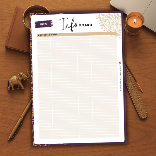 Luxury Info Board Planner Inserts (Set of 2) – Mandala Gold Purple Edition | Digital A5